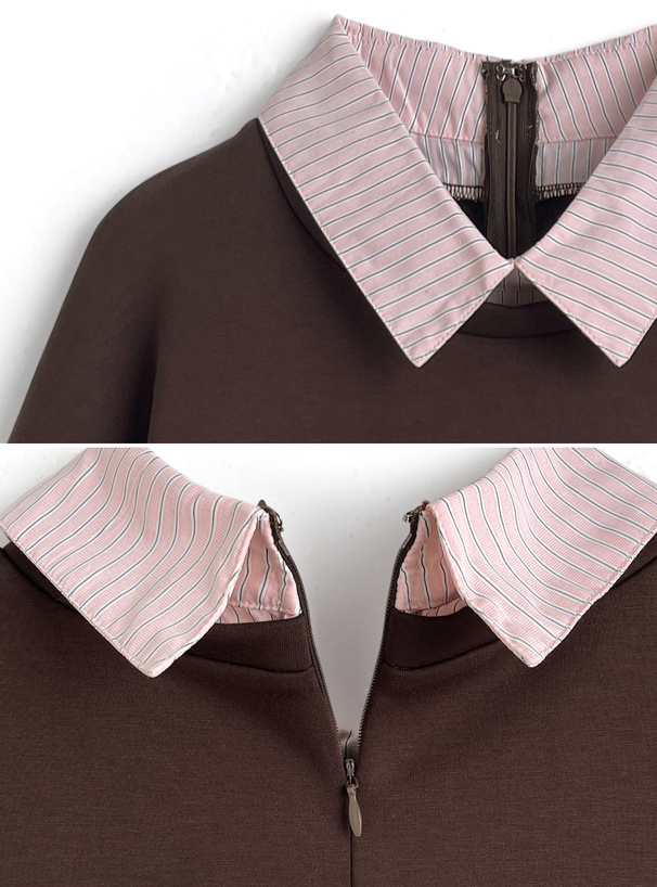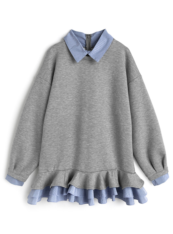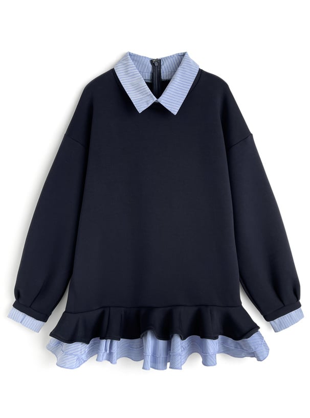 條紋襯衫荷葉邊連身裙 [kz708]