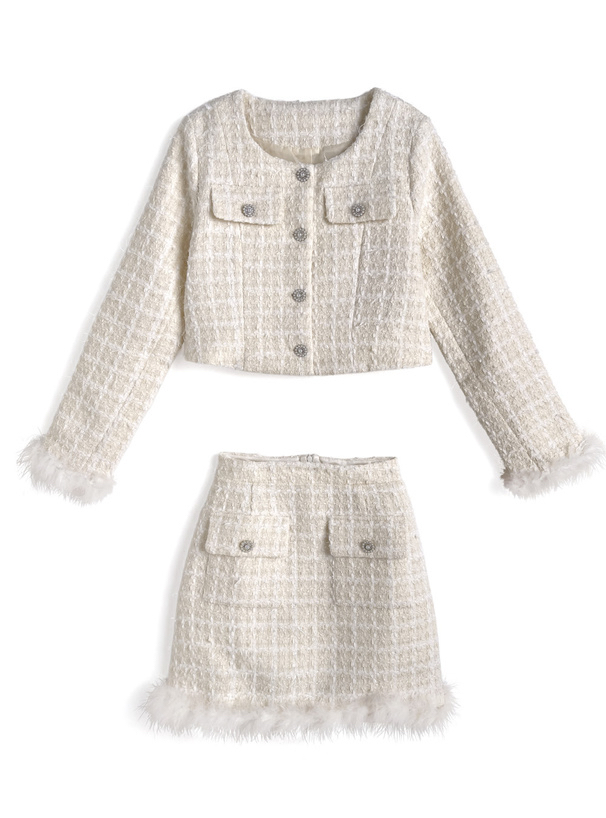 Size (cm) S 外套- 長度41 寬度44.5 肩寬36 袖長59 裙子- 總長度40.5 腰圍61 臀圍88 M 外套- 長度41 寬度46.5 肩寬37 袖長60 裙子- 總長度41.5 腰圍64 臀圍91 L 外套- 長度41 寬度48.5 肩寬38 袖長61 裙子- 總長度42.5 腰圍67 臀圍94