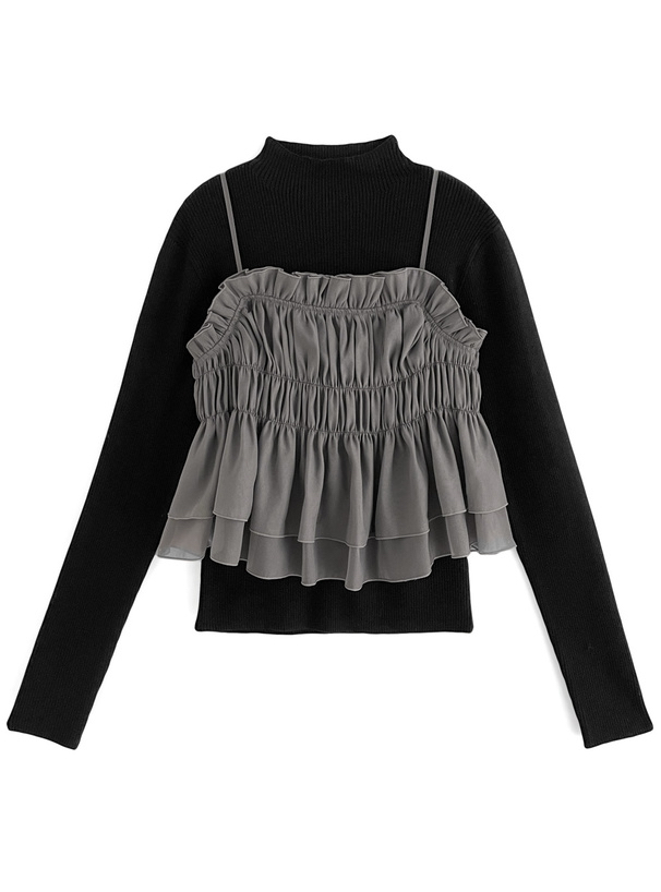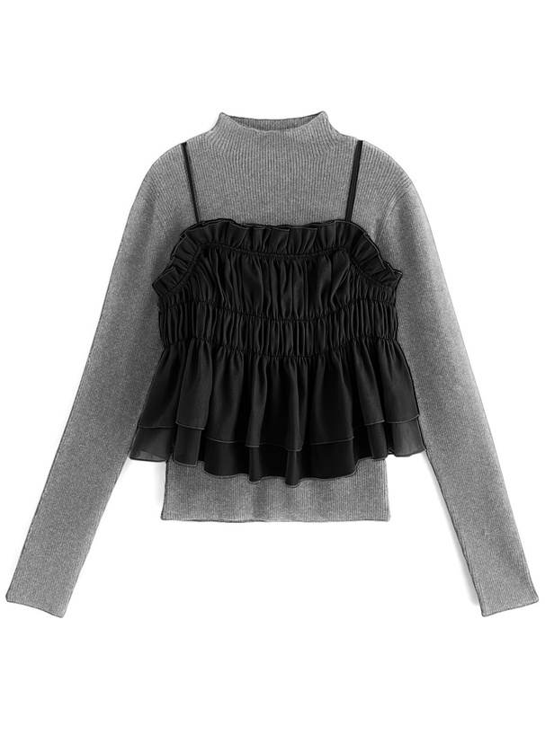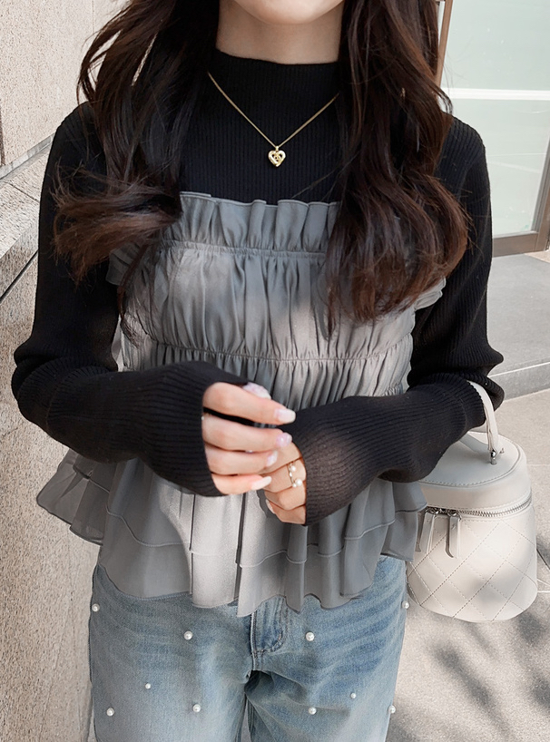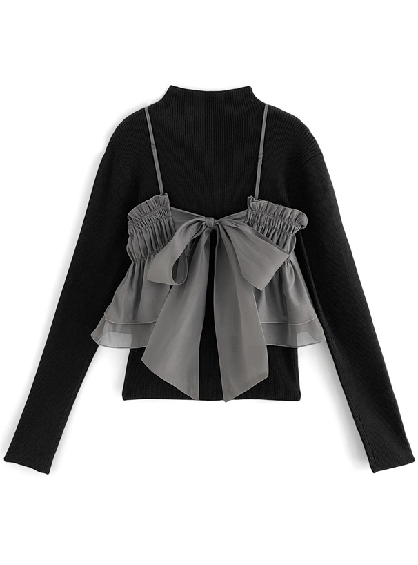 背面蝴蝶結紗質背心 x 羅紋針織上衣set [tu885]