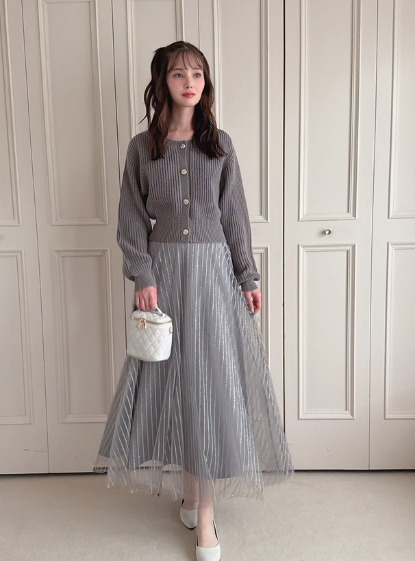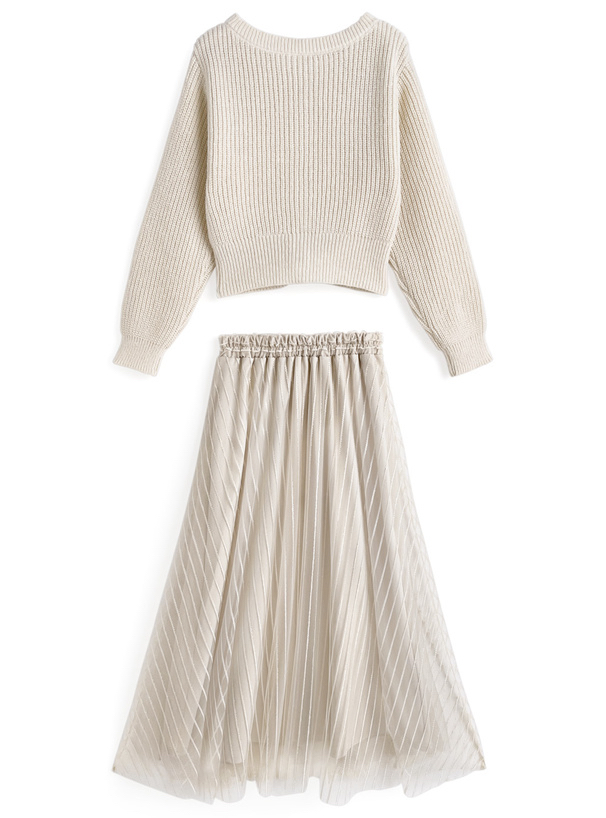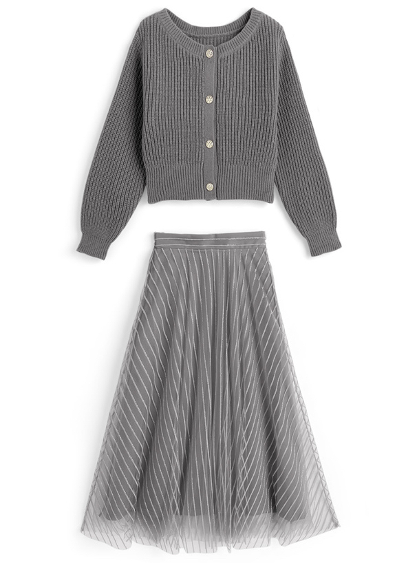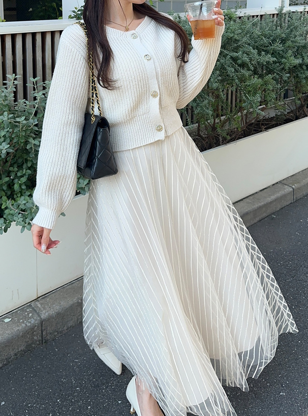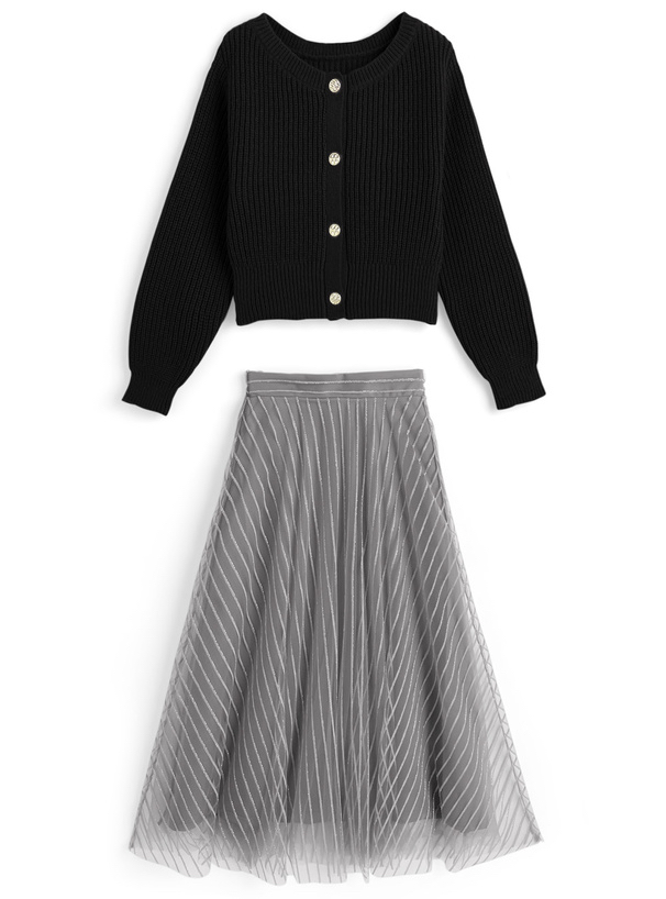 針織外套+條紋薄紗裙set [dr828]
